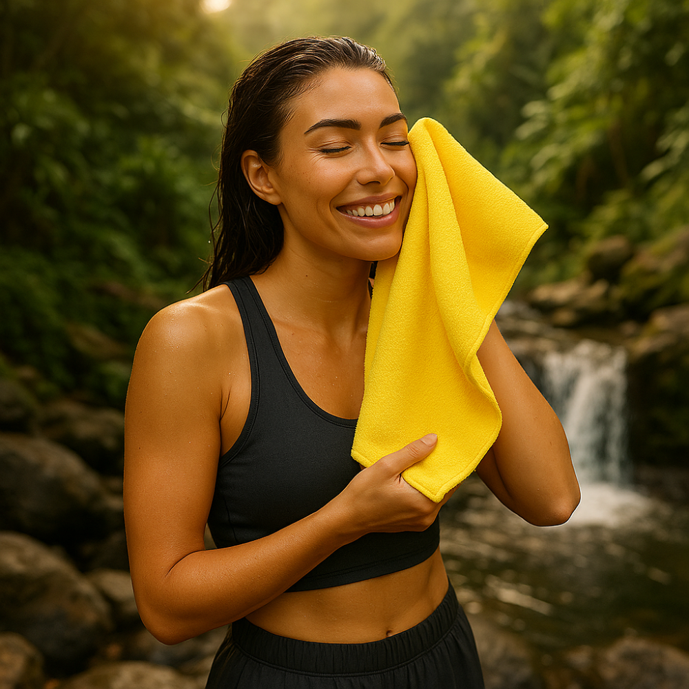Microfibra premium (80% poliéster + 20% poliamida) com tecnologia NanoFibra.