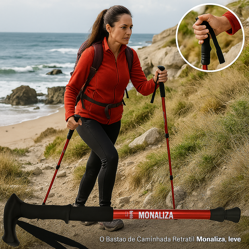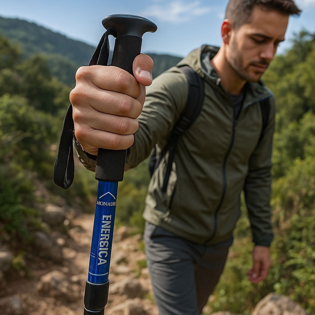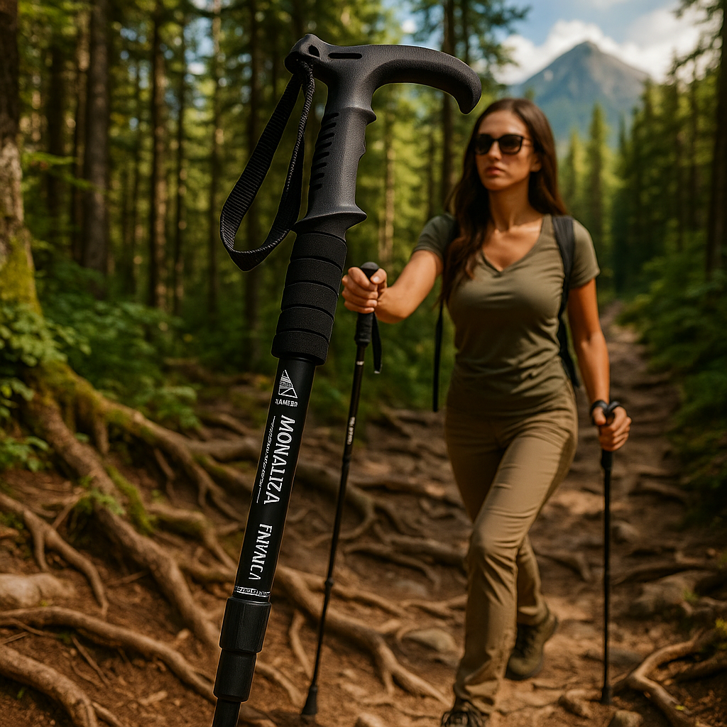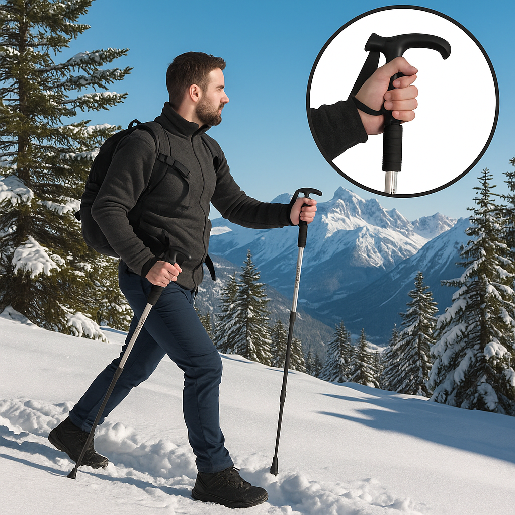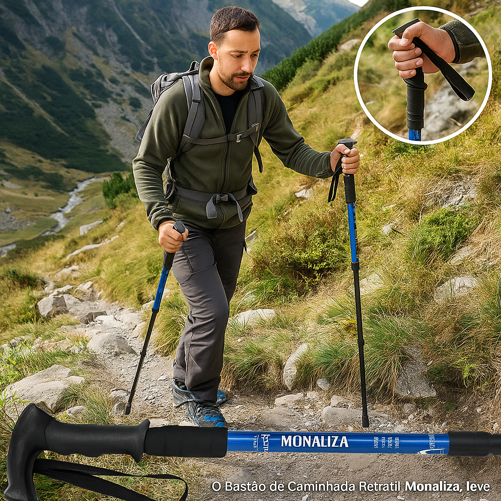 🌲 Tenha estabilidade, conforto e segurança em qualquer terreno com o Bastão de Caminhada Pro. Leve, retrátil e anti-impacto, pronto para suas aventuras!