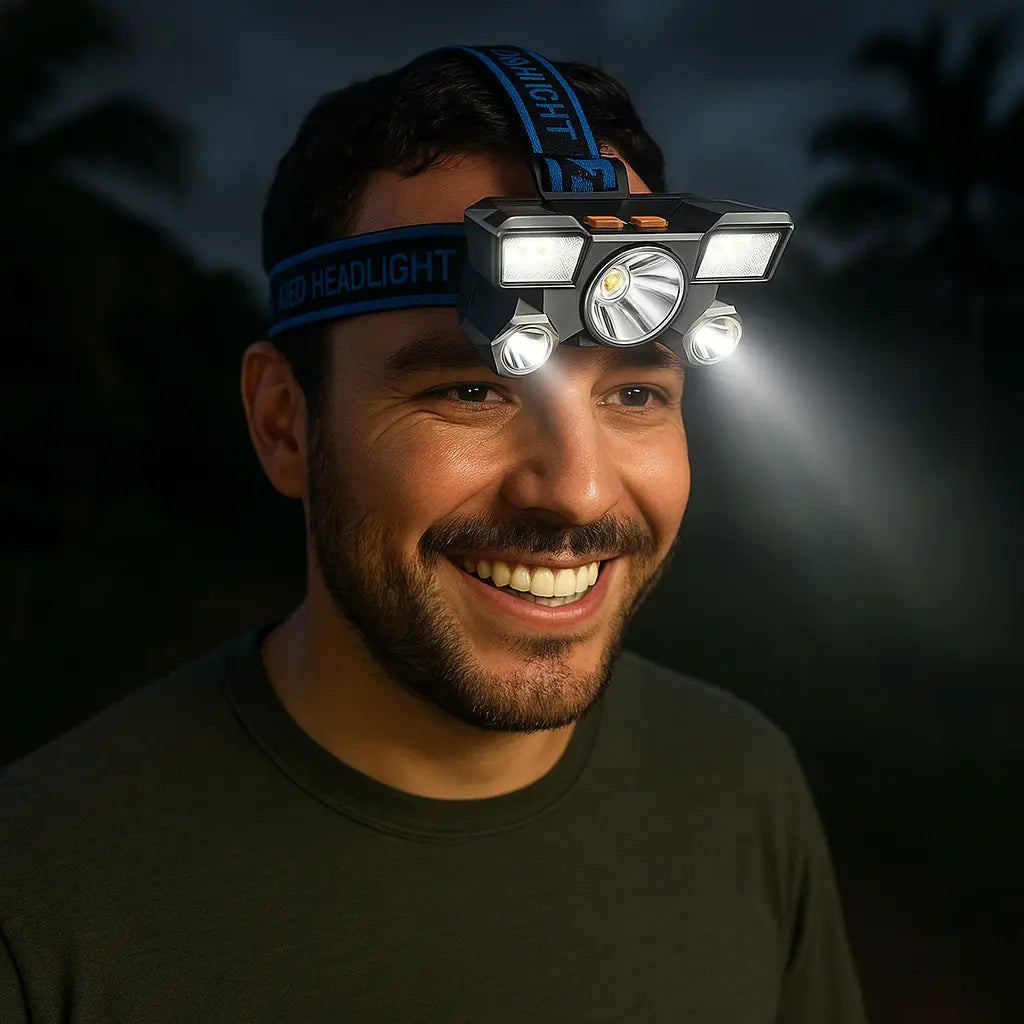 Chega de se frustrar com lanterna fraca! Com 5 LEDs de alta intensidade e até 500 lúmens por ponto de luz, essa lanterna de cabeça ilumina com alcance de até 1000 metros reais. Ideal para trilhas, acampamentos, ciclismo, pescarias e emergências — visibilidade total com as mãos livres.