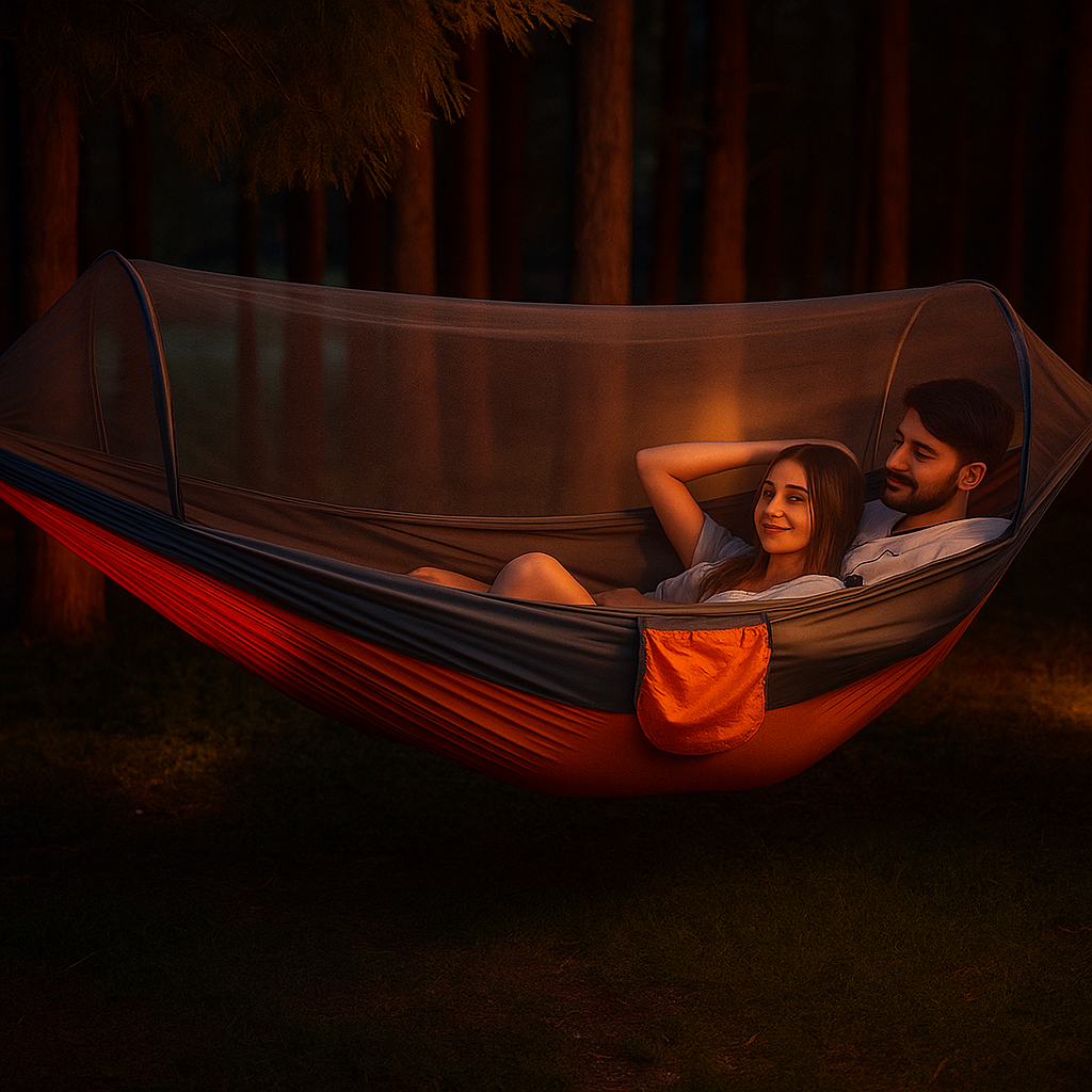 Fabricada em nylon 210T de paraquedas ultrarresistente, suporta até 250kg com estabilidade total. Seu tamanho amplo (270x140cm) garante espaço, comodidade e liberdade de movimento, perfeita para camping, trilhas ou relaxar no quintal.